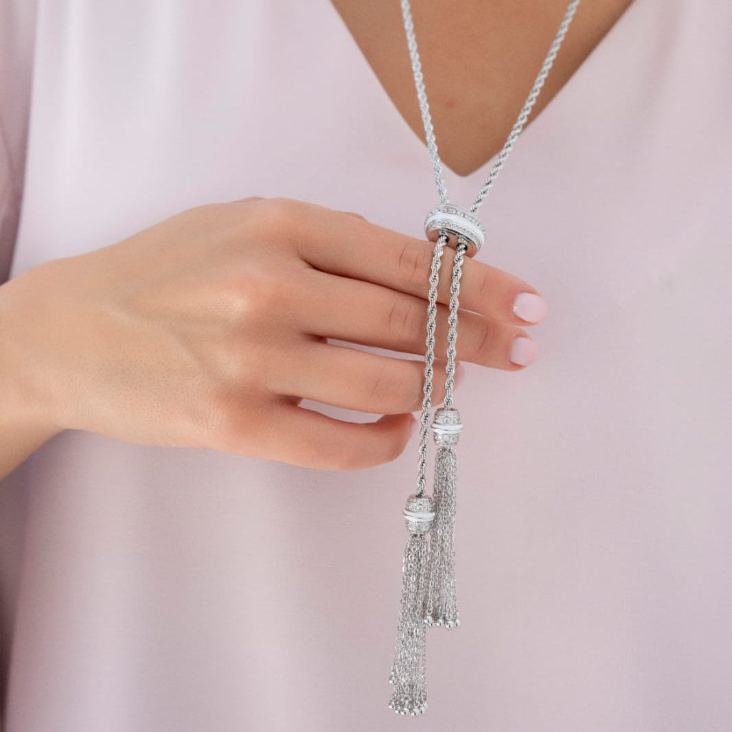 لفت الأنظار مع مجموعة الشرابة الذهبية الجذابة. تتميز هذه المجموعة المذهلة بقلادة طويلة مزينة بقلادة ساحرة حسب اختيارك من الطلاء الذهبي أو الفضي. شرابات دقيقة، مصنوعة بدقة وتعليقات مبطنة بأحجار الزركون المتلألئة، تتدفق من القلادة، وتلتقط الضوء مع كل حركة وتخلق عرضًا مبهرًا. تكتمل المجموعة بأقراط متطابقة، مما يعكس تصميم الشرابة بلمسة من الأناقة المتناسقة.