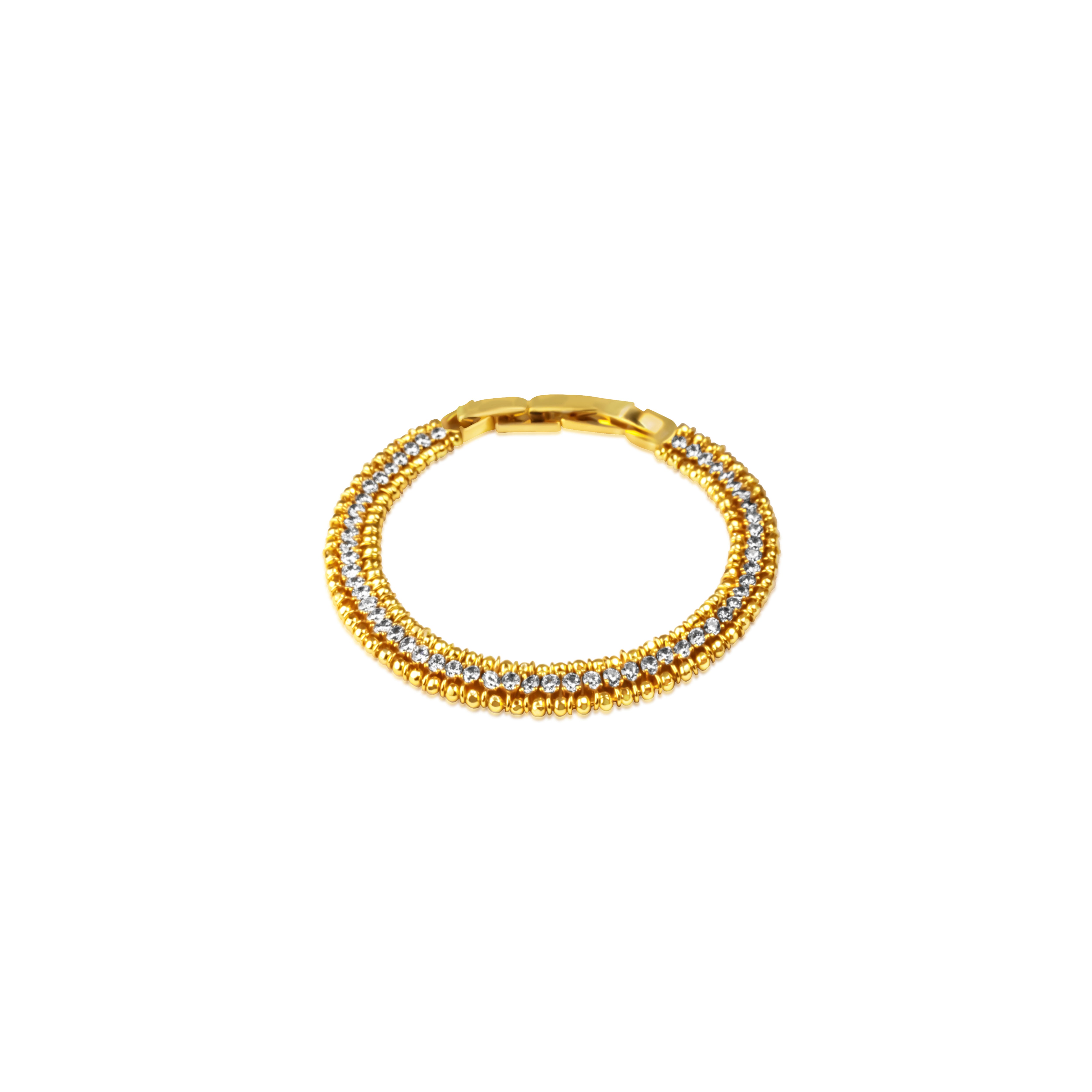 Sleek and sophisticated, the Noura Drop Bracelet features a double-layer design of polished gold-plated or white gold-plated links that capture light with every movement. Its refined texture and subtle shine make it a versatile statement piece, perfect on its own or paired with other Selsela favorites for a modern, radiant look.