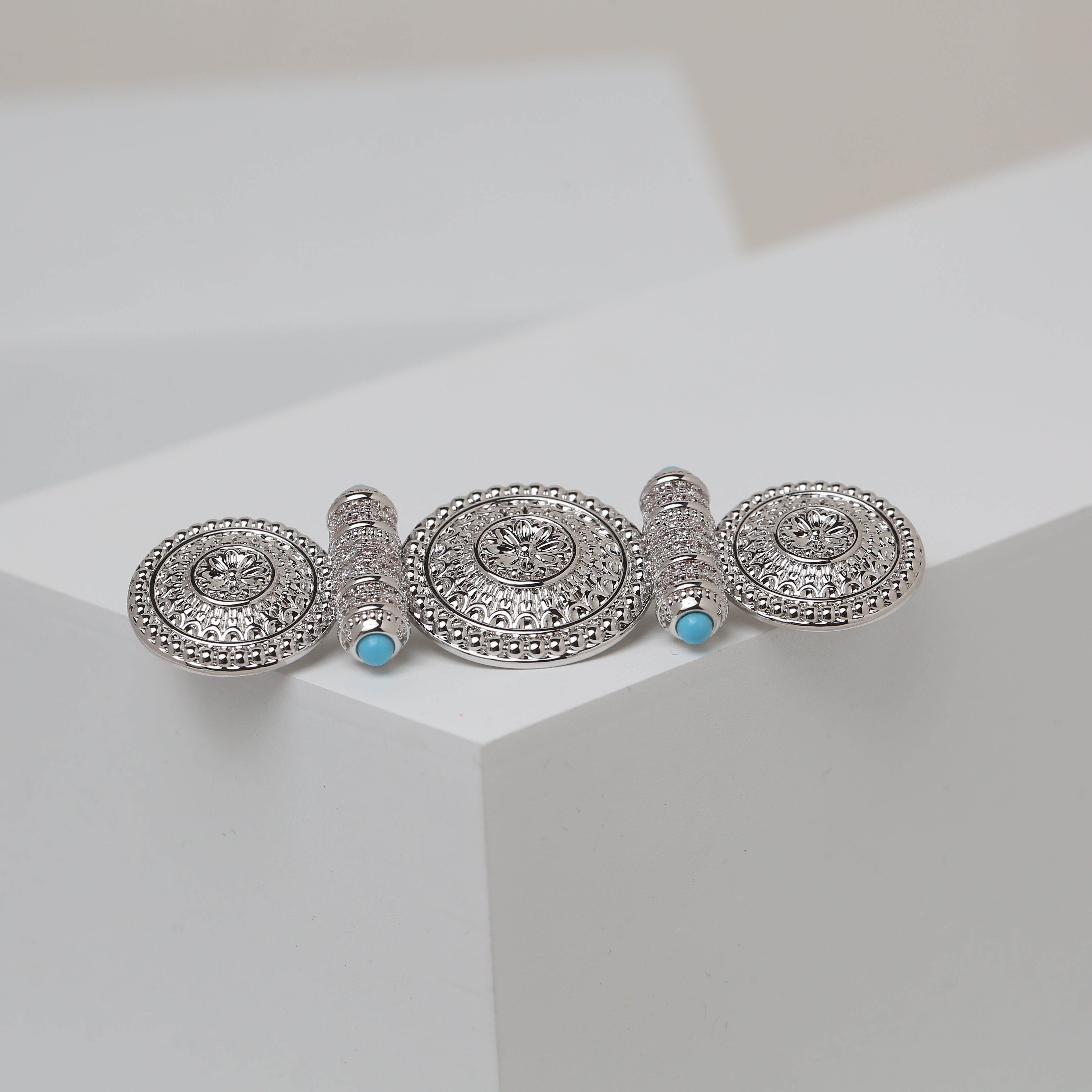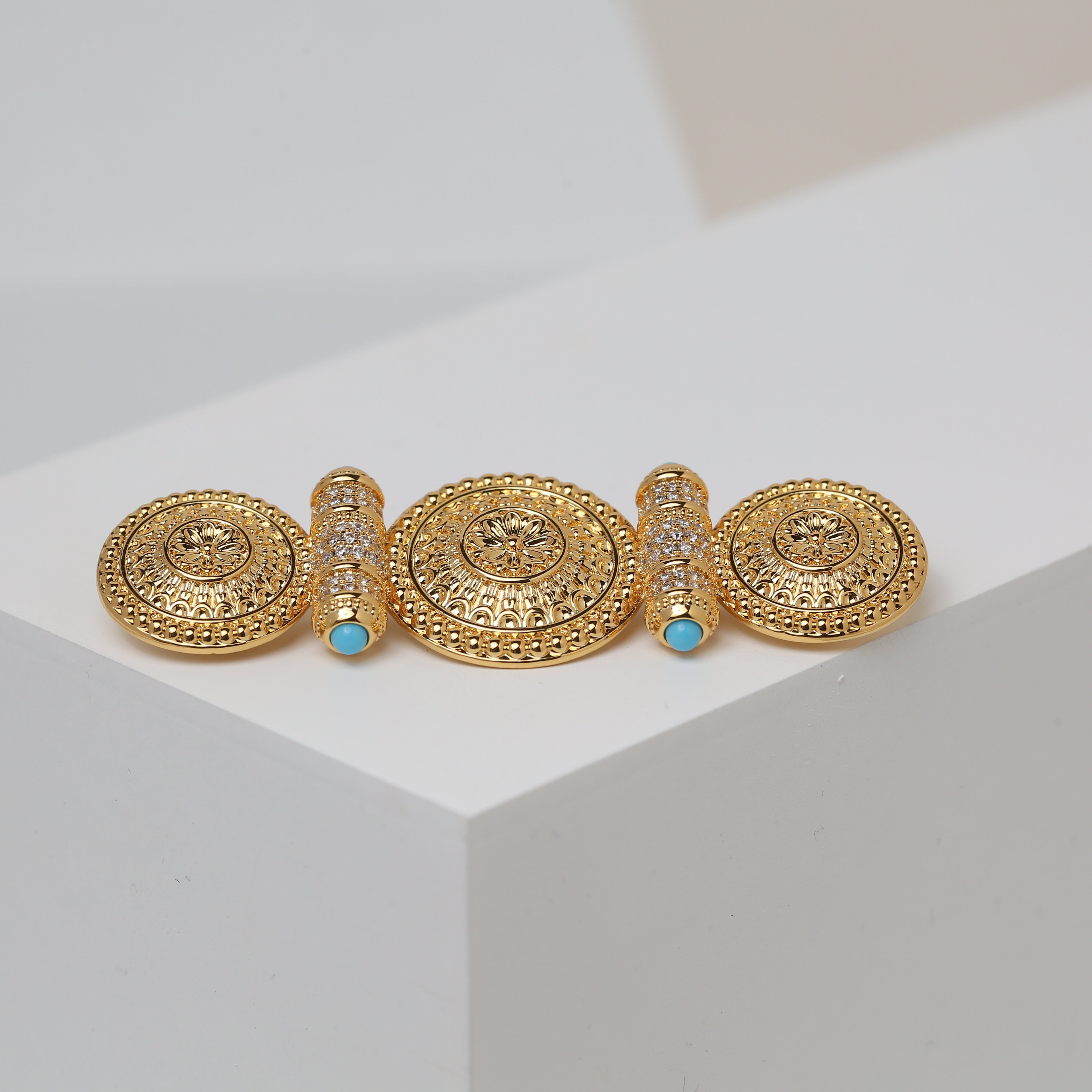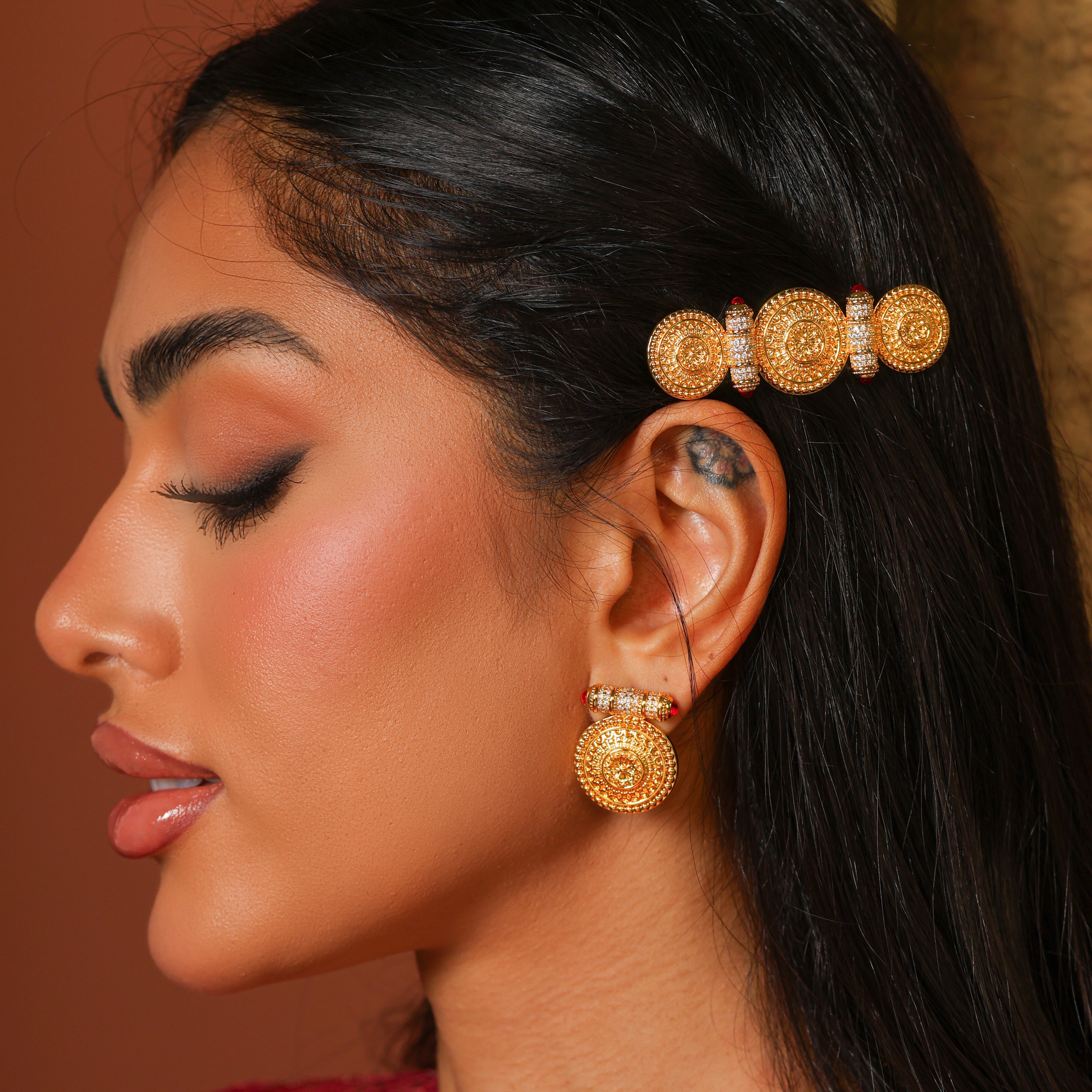 A festive touch of tradition reimagined, the Round Dakka Hair Pin from our Ramadan Collection 2026 brings heritage-inspired elegance to your hair styling. Featuring an intricately detailed round Dakka motif, this accessory adds a subtle shimmer and a unique statement to any look. Perfect for Ramadan gatherings and special celebrations, it’s the ideal finishing piece to elevate both modern and traditional outfits with timeless charm.