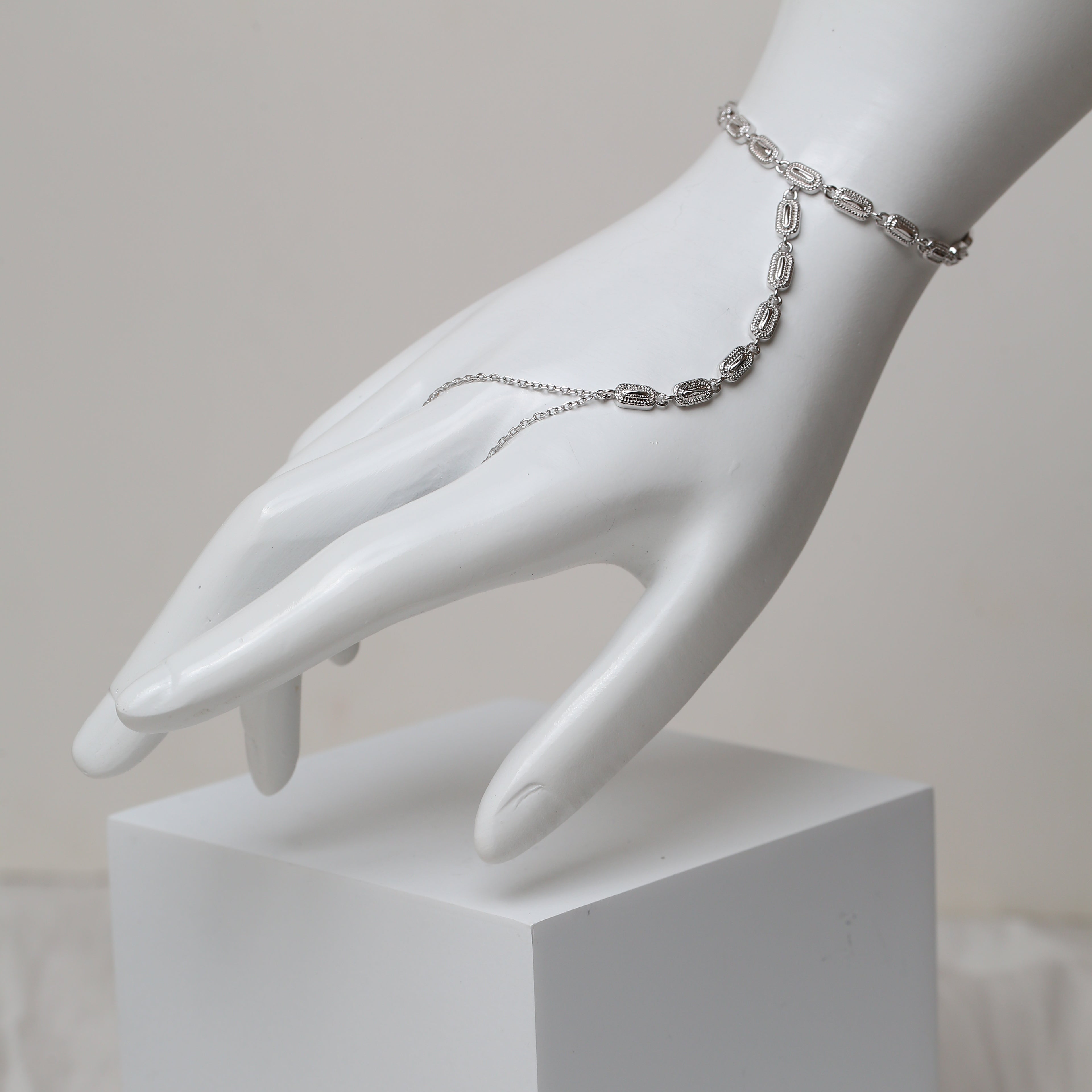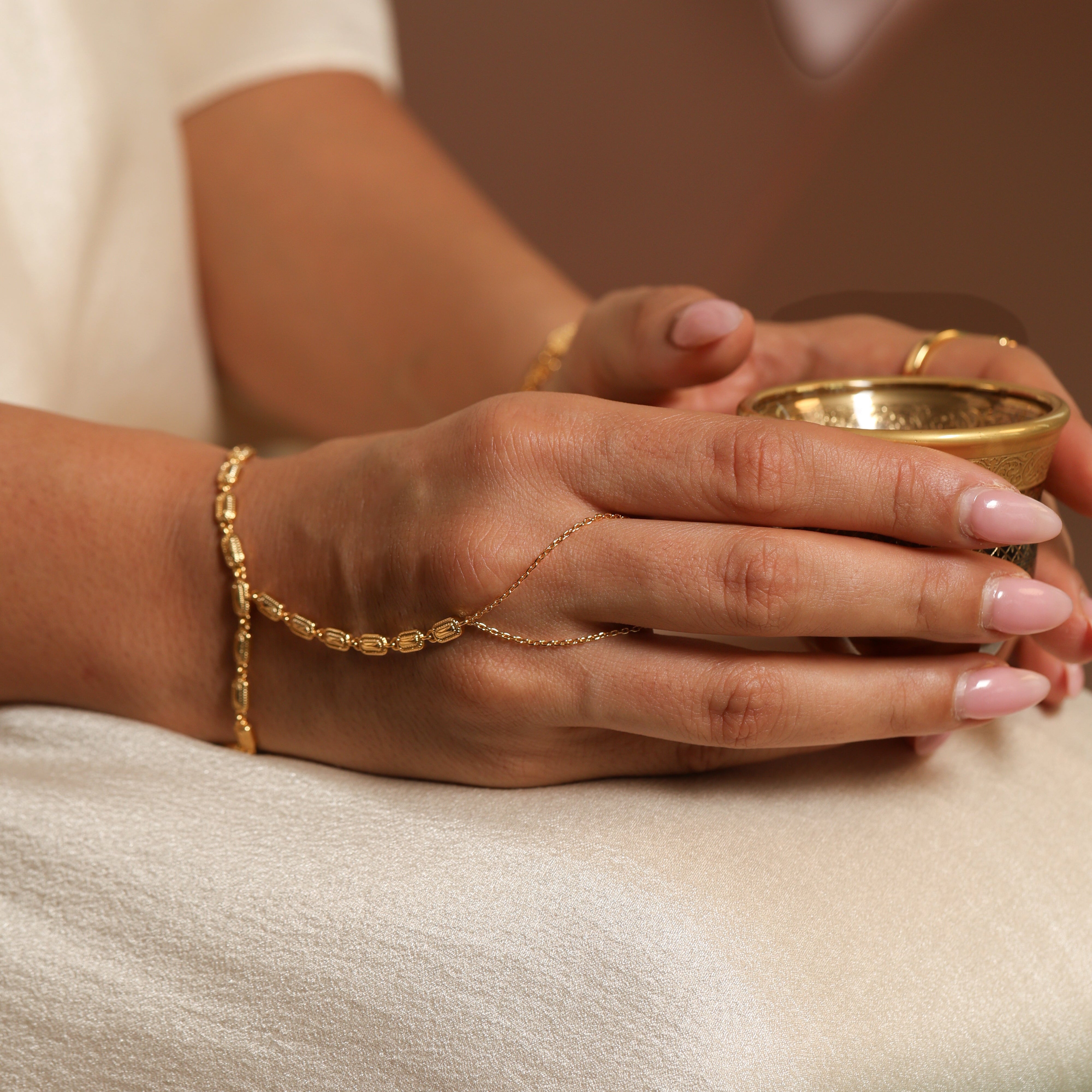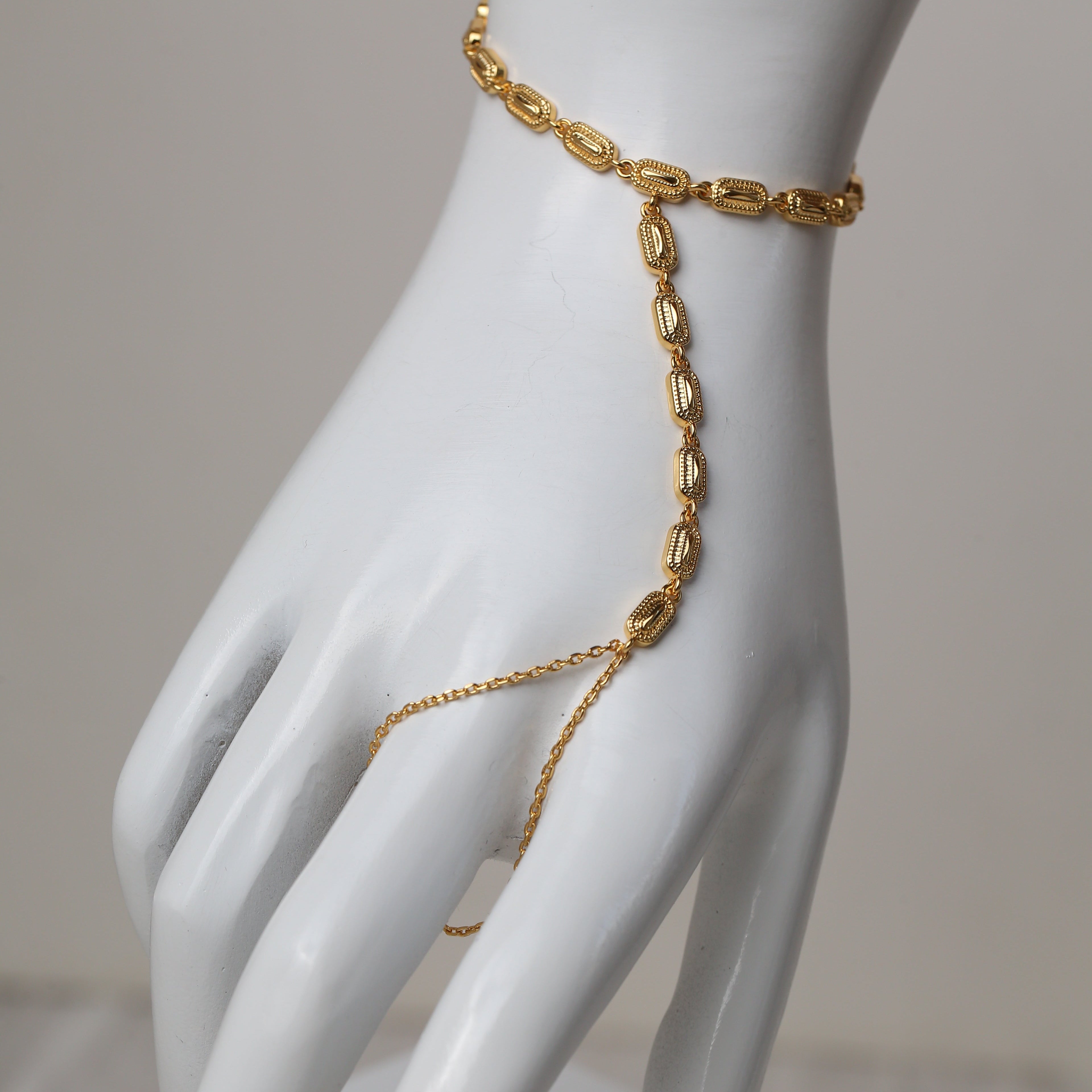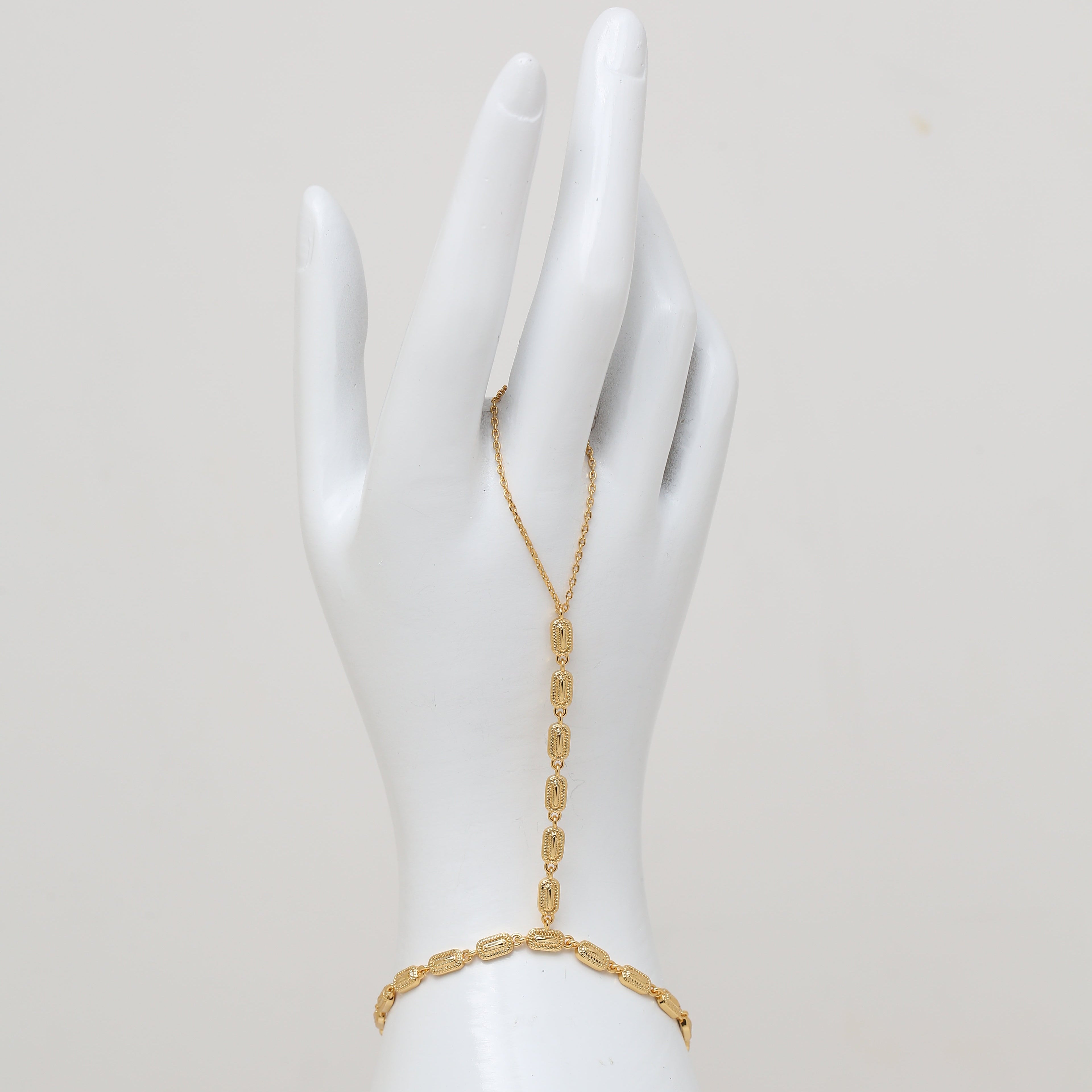 An elegant celebration of tradition and modern femininity, the Multiple Elongated Oval Dakka Handchain from our Ramadan Collection 2026 is designed to make a refined statement. Featuring a delicate chain adorned with intricately textured elongated oval Dakka links, this piece drapes gracefully across the hand for a luxurious festive look. Perfect for Ramadan evenings and special occasions, it adds timeless heritage-inspired charm to every gesture.