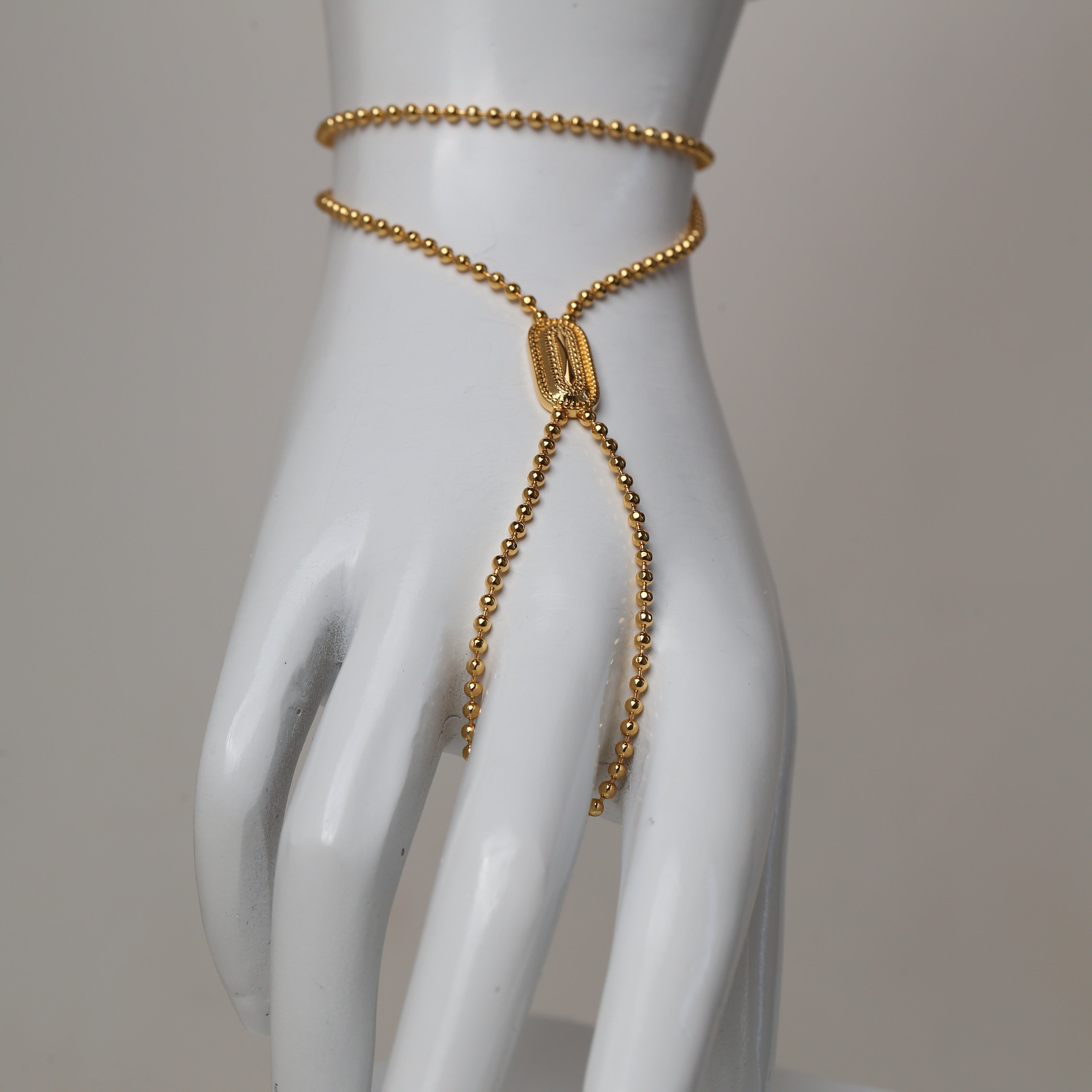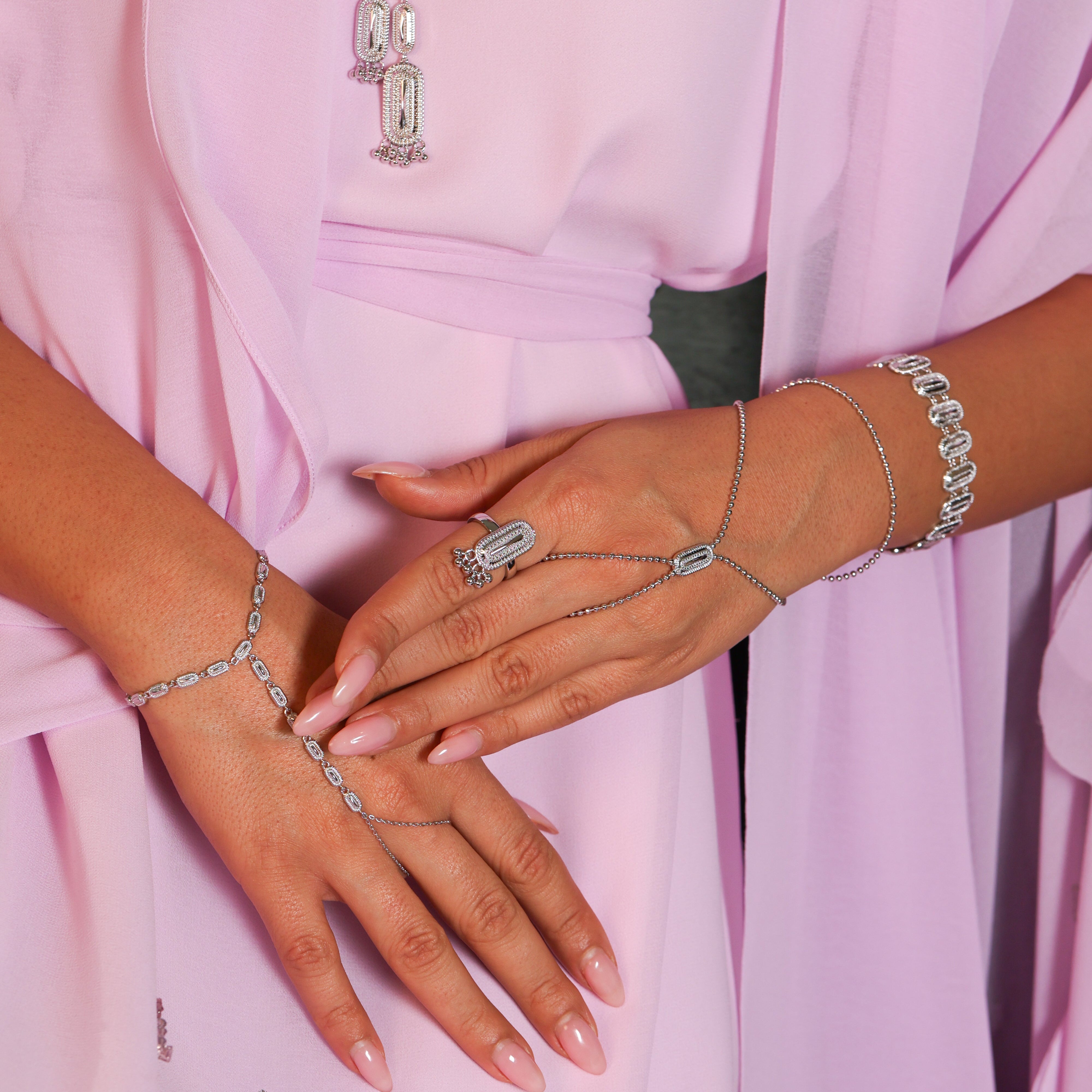 Minimal yet striking, the One Elongated Oval Dakka Handchain from our Ramadan Collection 2026 embodies understated elegance with a touch of tradition. Featuring a delicate hand-draped chain accented by a single intricately textured elongated oval Dakka link, this piece adds graceful sophistication to every movement. Perfect for Ramadan evenings and special celebrations, it’s a timeless accessory designed to shine effortlessly.