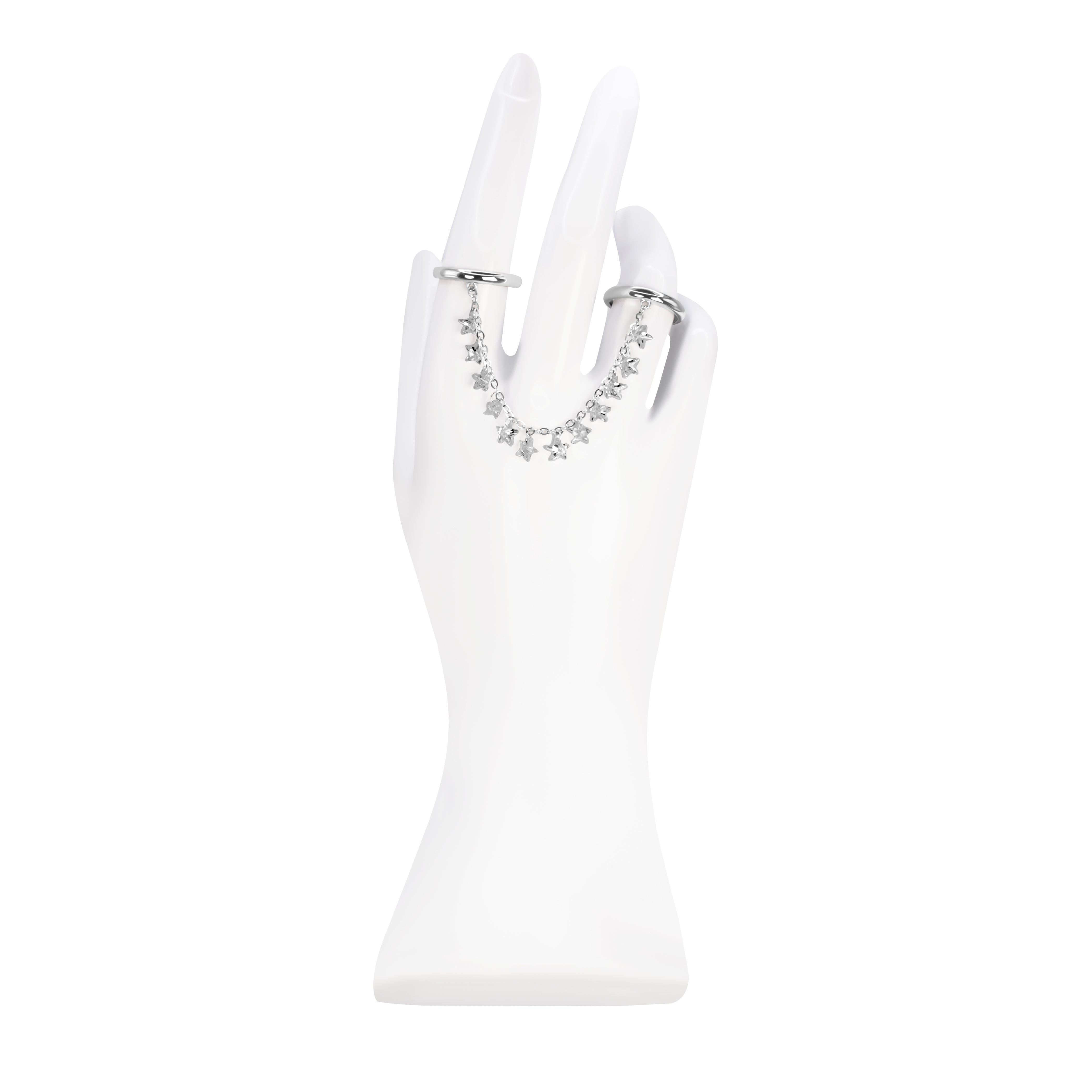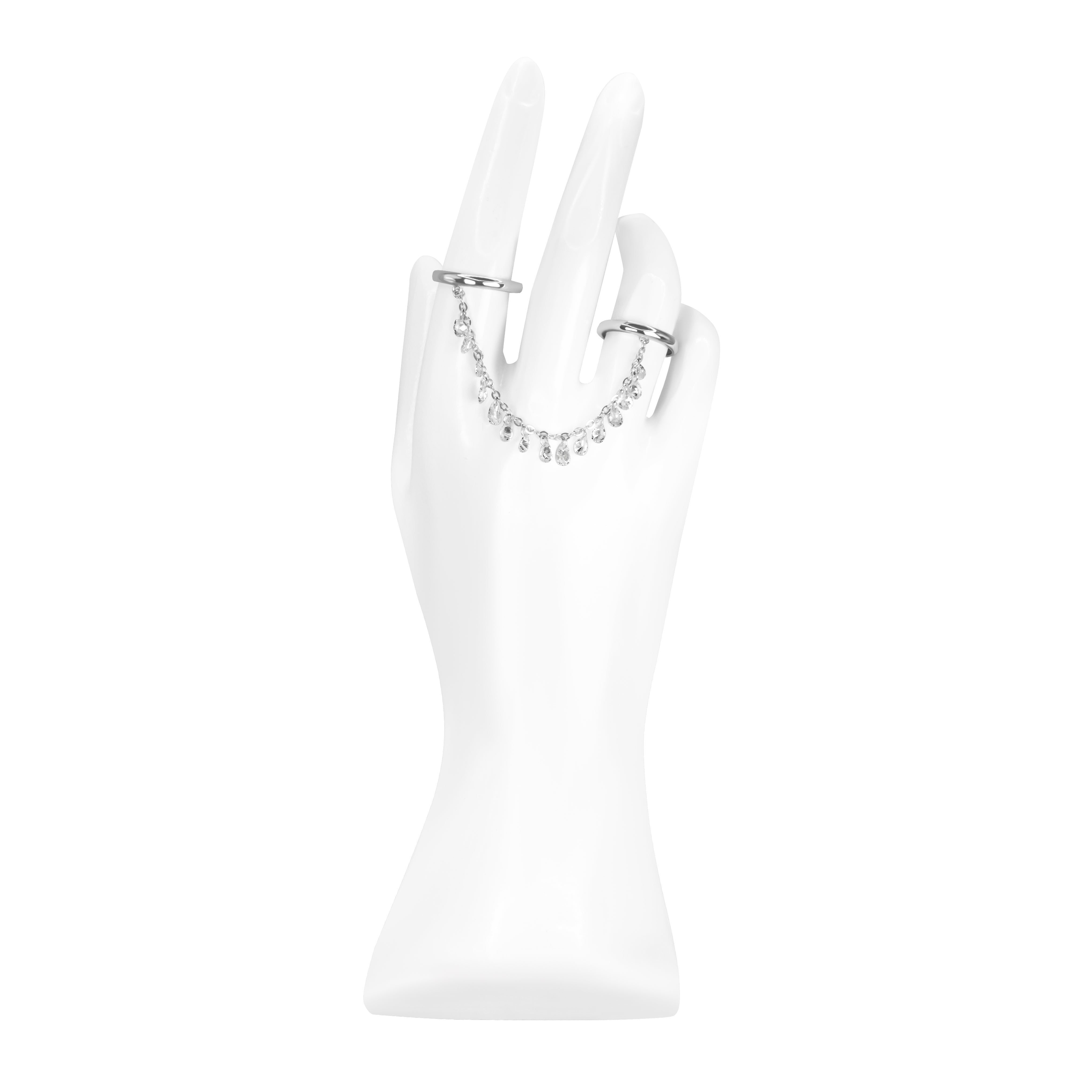 A sleek double ring connected by a delicate chain of clear stones, designed to add subtle sparkle and modern edge. Elegant worn alone or layered for a statement look.