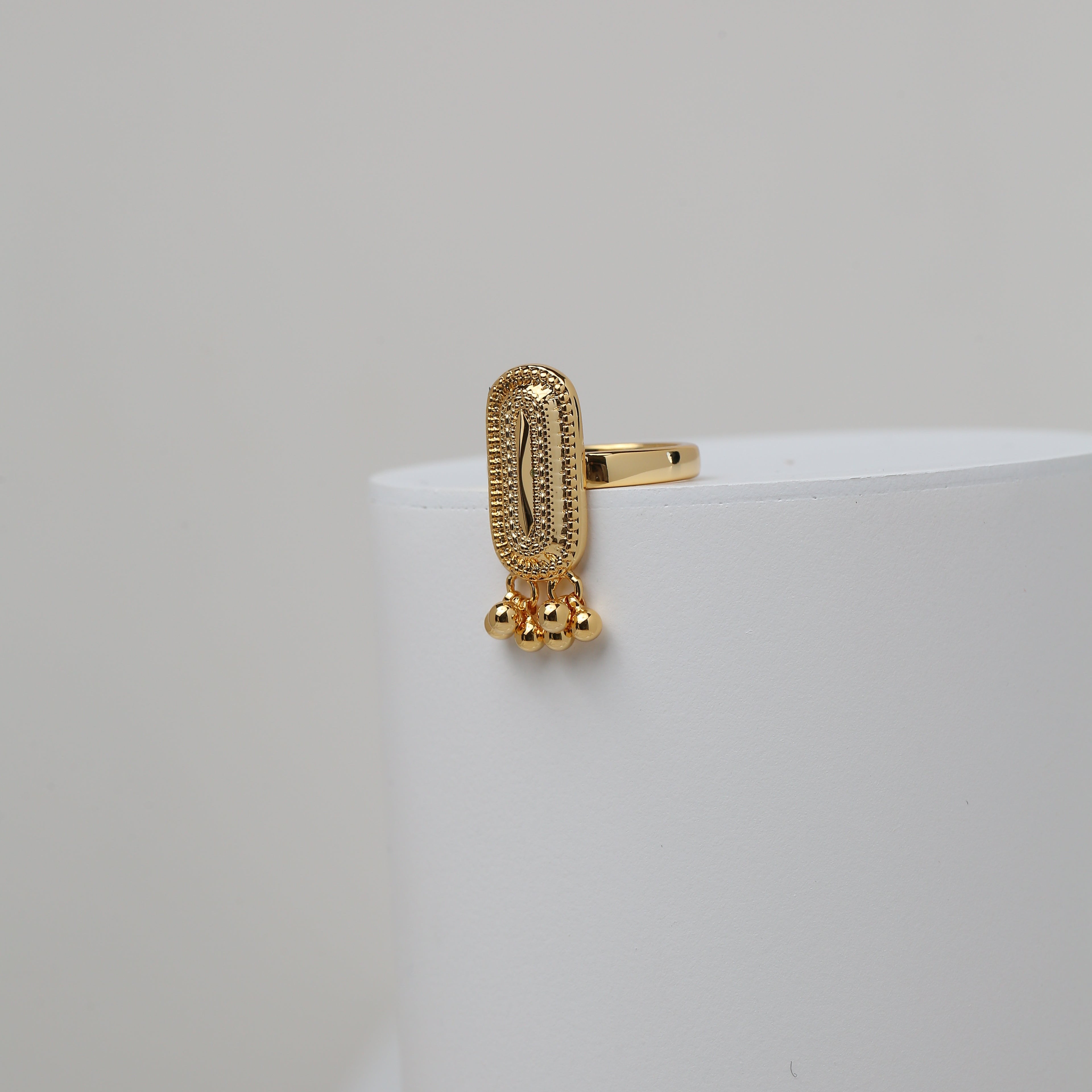 Inspired by the intricate beauty of traditional Dakka detailing, the Elongated Oval Dakka Ring is a timeless piece from our Ramadan Collection 2026. Featuring a bold elongated oval centerpiece with delicate textured craftsmanship and subtle dangling accents, this ring captures elegance with a festive touch. Perfect for Ramadan evenings and special occasions, it adds a statement of heritage-inspired sophistication to any look.