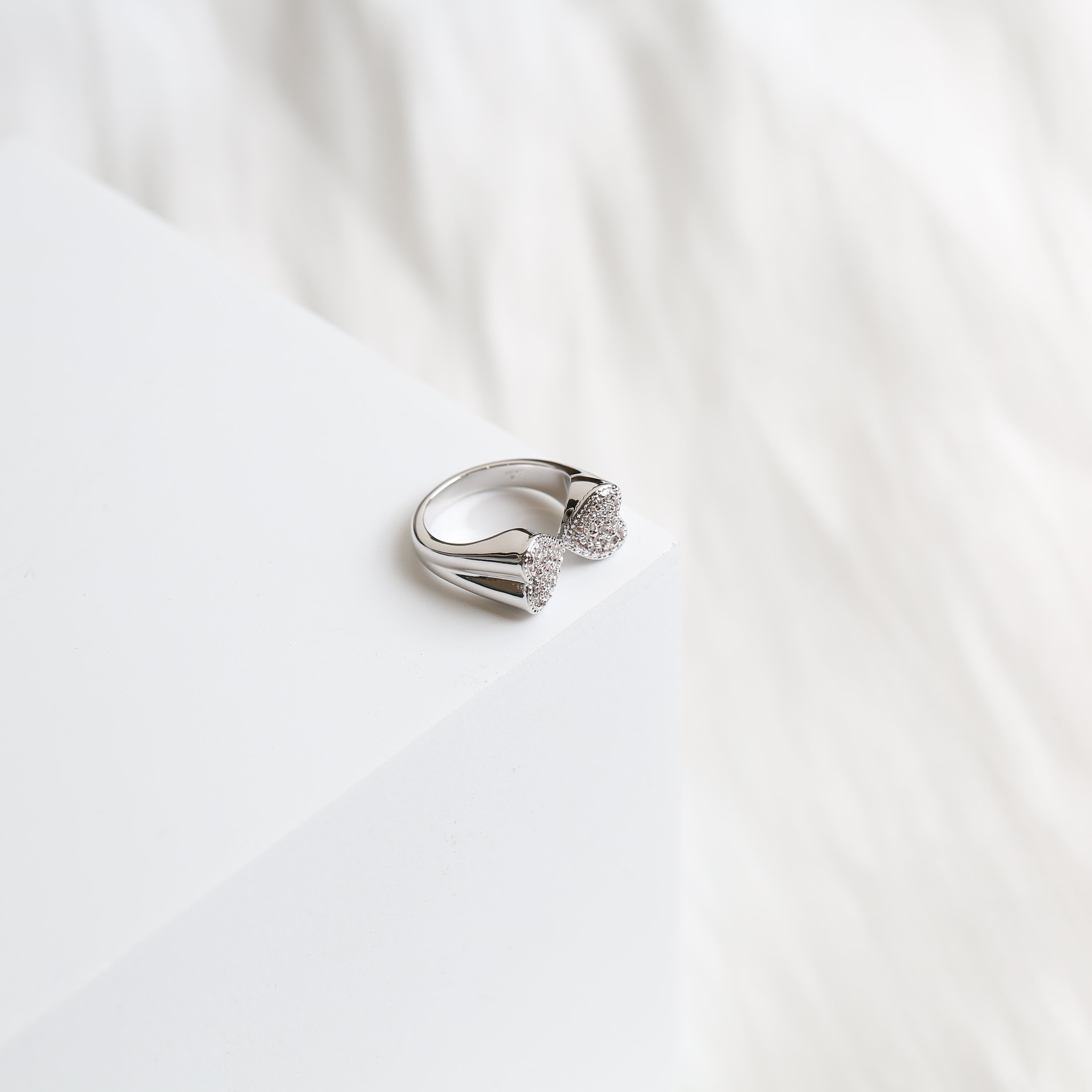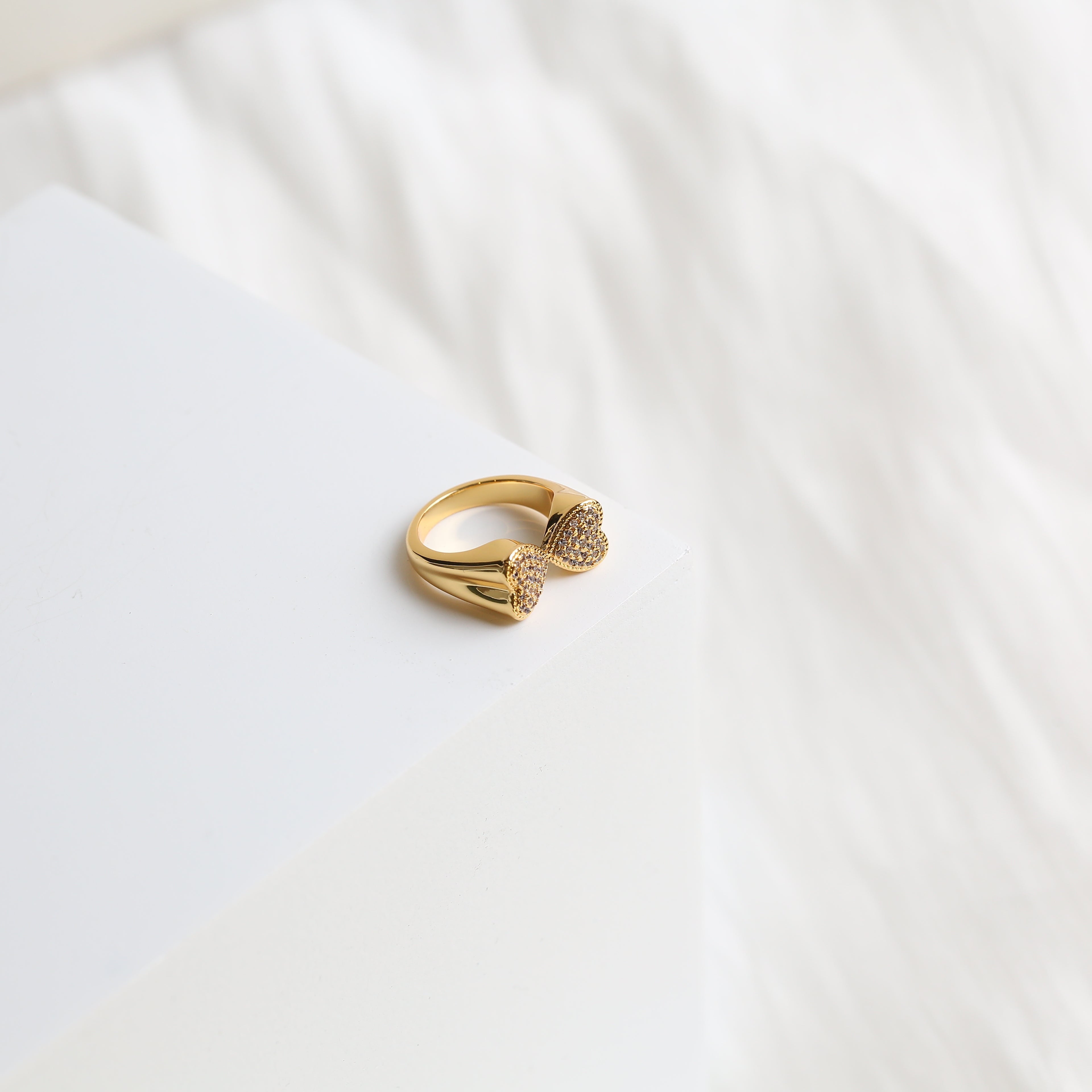 Two pavé heart motifs face one another in a delicate yet eye-catching design. A charming pinky ring that's elegant and lightweight, it adds a refined sparkle that’s easy to style for everyday wear or layering.