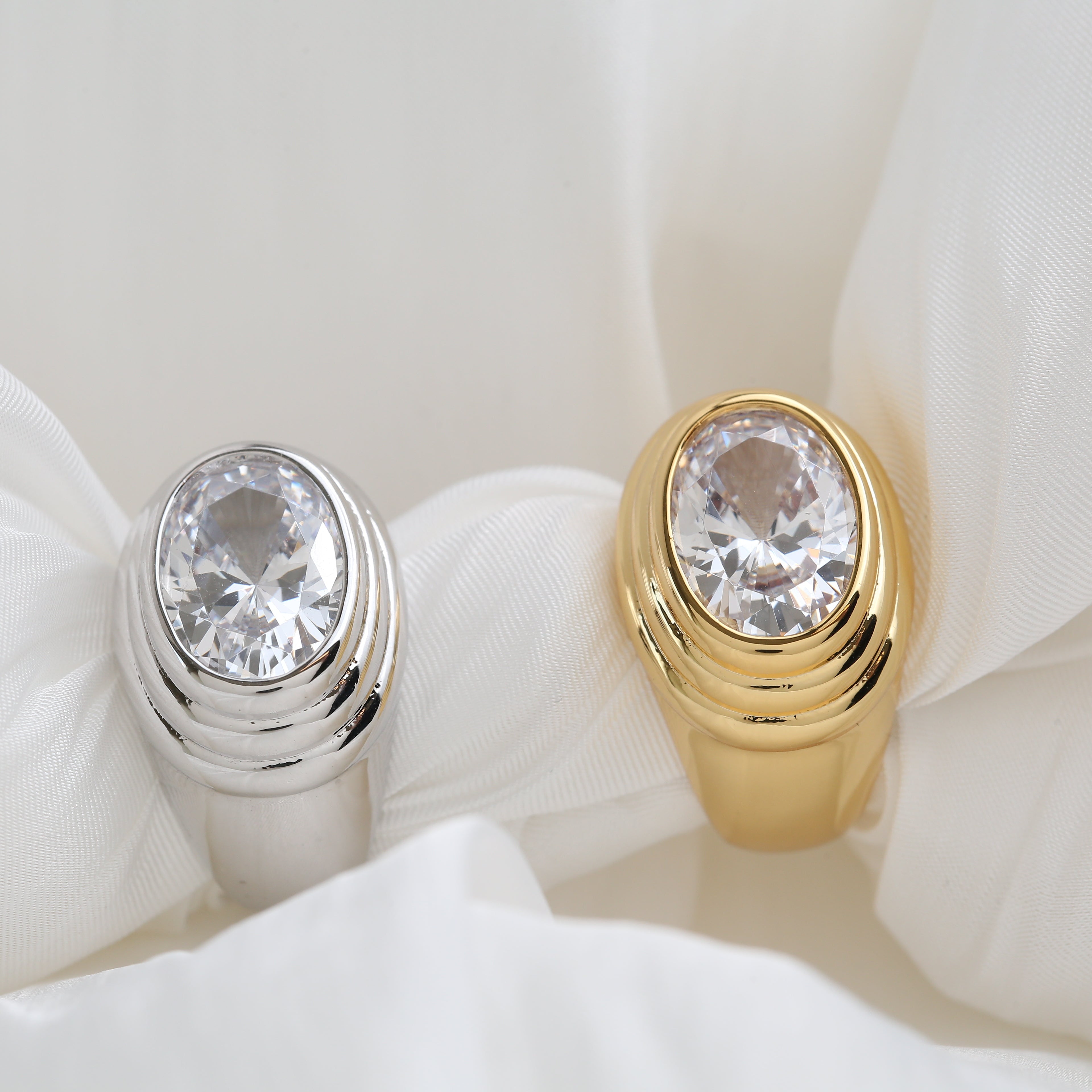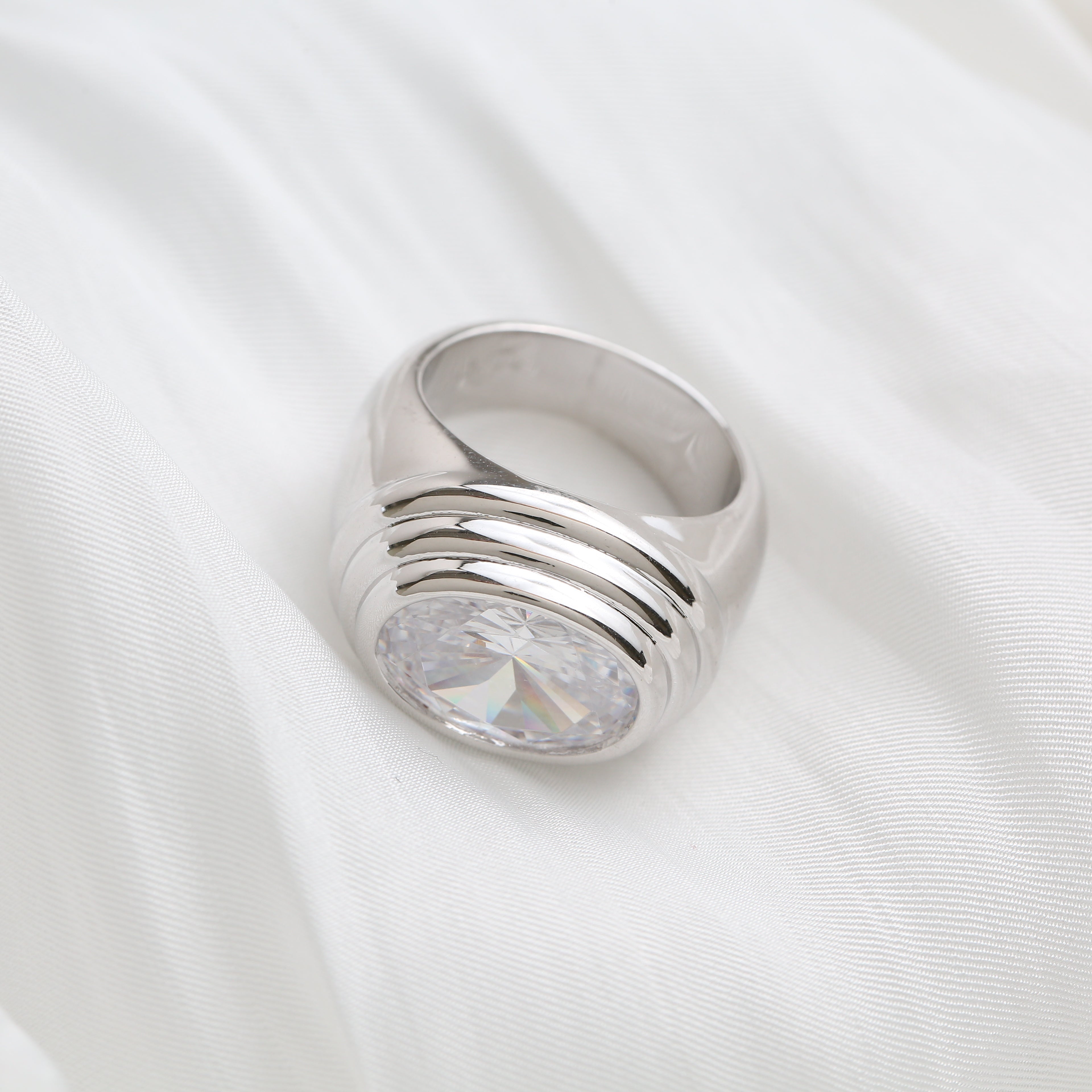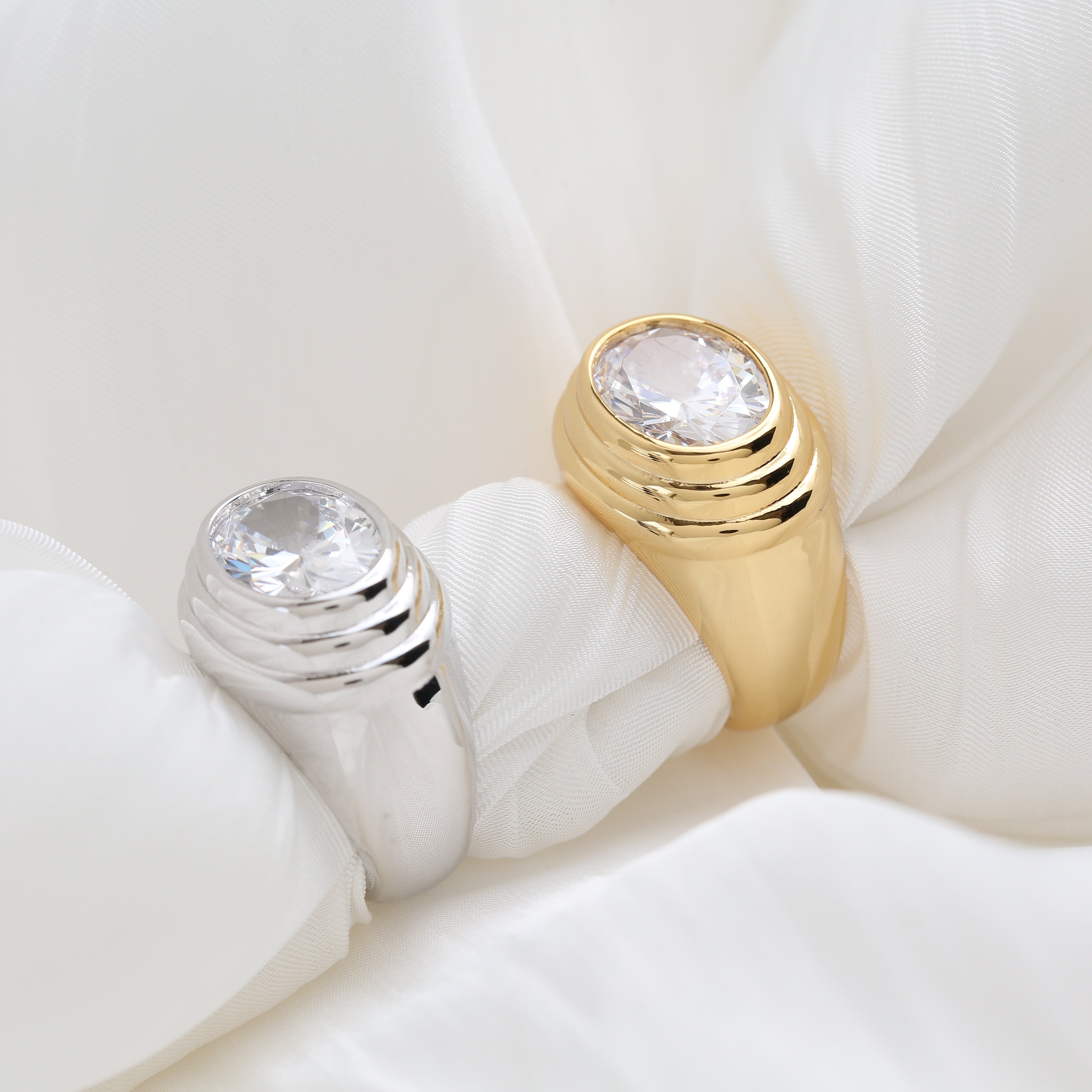 A bold statement of modern elegance. The Round Stairs Ring features a striking round-cut stone, framed by smooth layered bands that create a sculptural, stepped effect. Designed to catch the light from every angle, this ring blends contemporary structure with timeless shine.